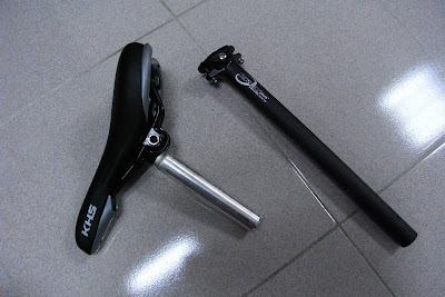 原本買的 KHS R-2000 的座管太短了,所以我的腳無法完全伸展開來,這樣子腳會很容易疲勞的...